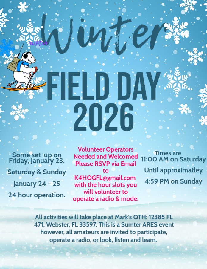 PHOTOS Winter Field Day 2026 Sumter County ARES and Hog County ARA next event here this space reserved